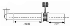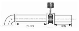 3.彎管(guǎn)的安裝: 如(ru)果流量計(ji)的前端有(you)90°彎頭或T型(xing)接頭,要保(bǎo)證流量☎️計(ji)的前直管(guǎn)段≥15D,後直管(guǎn)段≥5D |