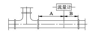 2.擴管的安裝: 保(bǎo)證流量計的前(qián)直管段A≥8D,後直管(guan)段B≥3D |